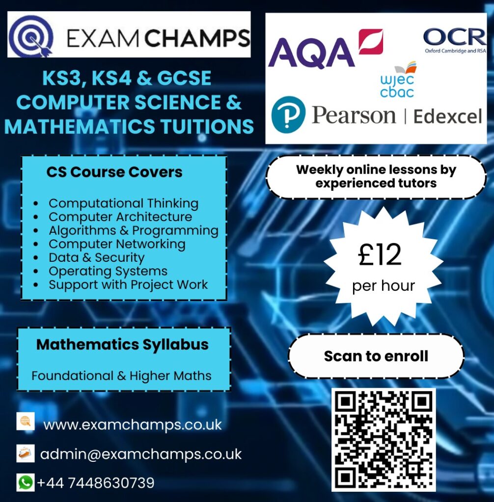 Our weekly classes are designed to comprehensively cover the full GCSE Computer Science curriculum, including: